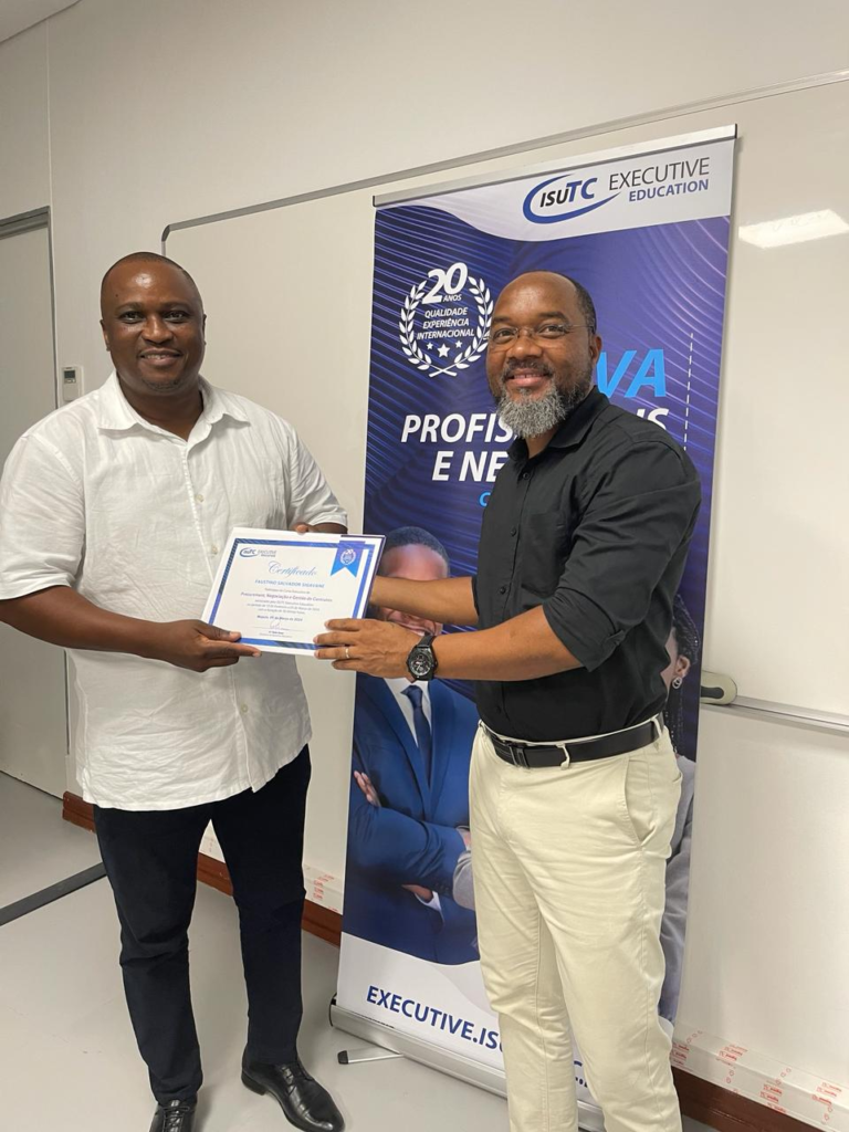 O sucesso da nossa formação em procurement tem sido extraordinário e devemos agradecer publicamente ao nosso excelente coordenador e formador, o Dr. Inocêncio Gulube, que a cada sessão consegue galvanizar os participantes, de tal forma que em todas as edições culminam com uma longa salva de palmas, palavras de agradecimento dos participantes e até algumas “lembrancinhas”.